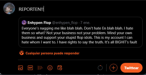 | -NO interactuar con antis y/o pixeles que ensucien las búsquedas, mucho menos si en su user lleva el nombre de un integrante o de ENHYPEN, ya que todo tweet hacía esa cuenta le dará relevancia y solo seguirías ensuciando las búsquedas y haciendo tendencia el nombre. |